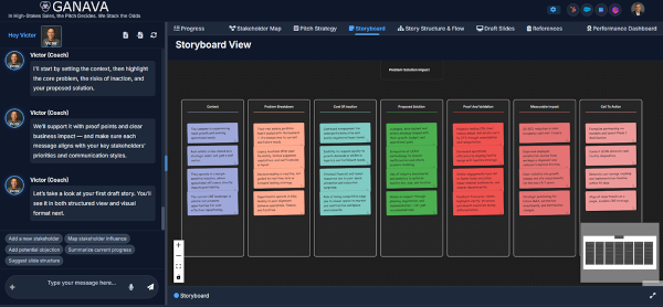 GANAVA is the pitch enablement platform that creates your strategy, story, and delivery – with you, through a guided conversational experience.